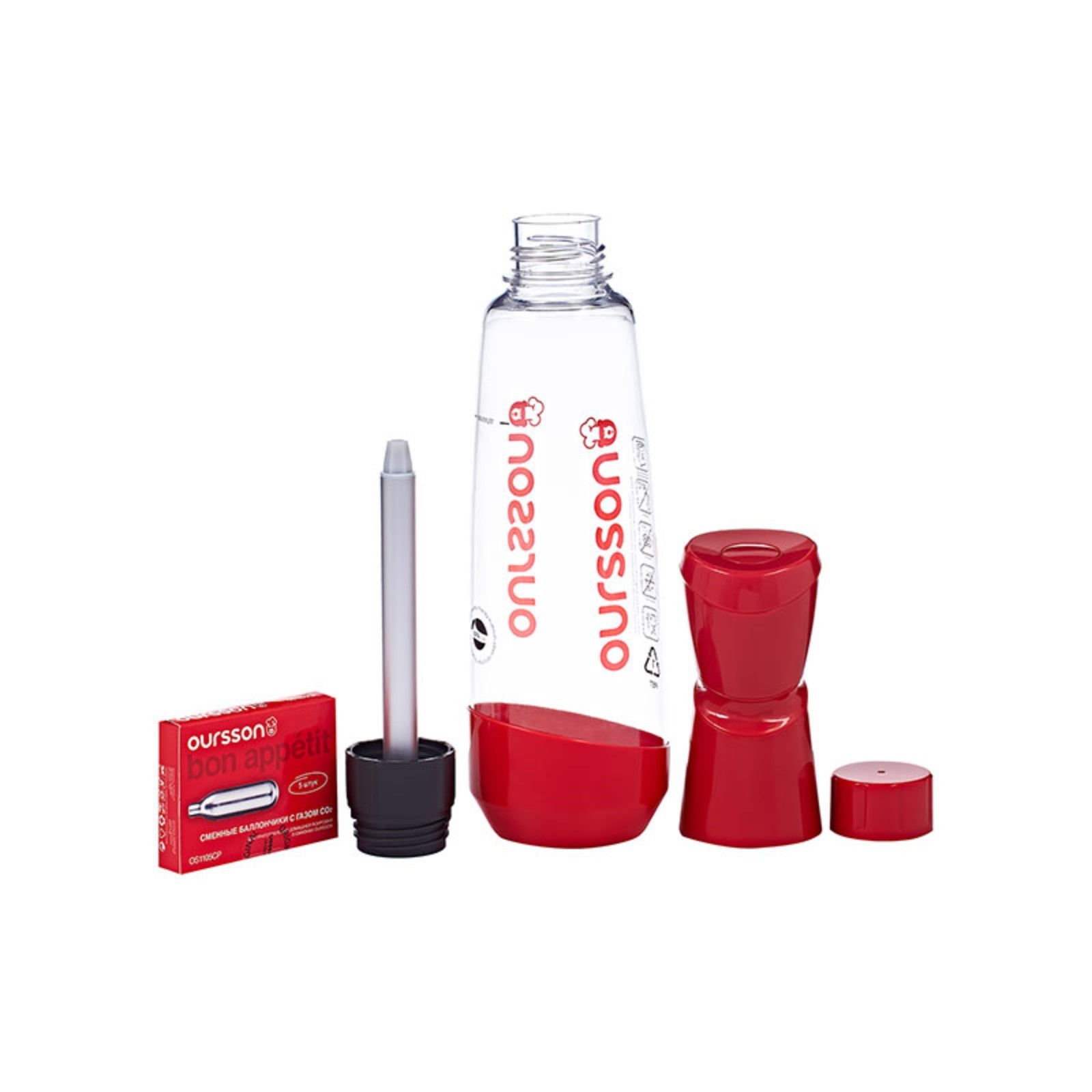 Набор для приготовления домашней газировки. Прибор очень простой в использовании. Достаточно налить охлажденную питьевую воду в бутылку до отметки максимального уровня, установить зарядный стержень на бутылку и баллончик внутрь головки сифона, повернуть для начала газирования и наслаждаться натуральным игристым напитком.